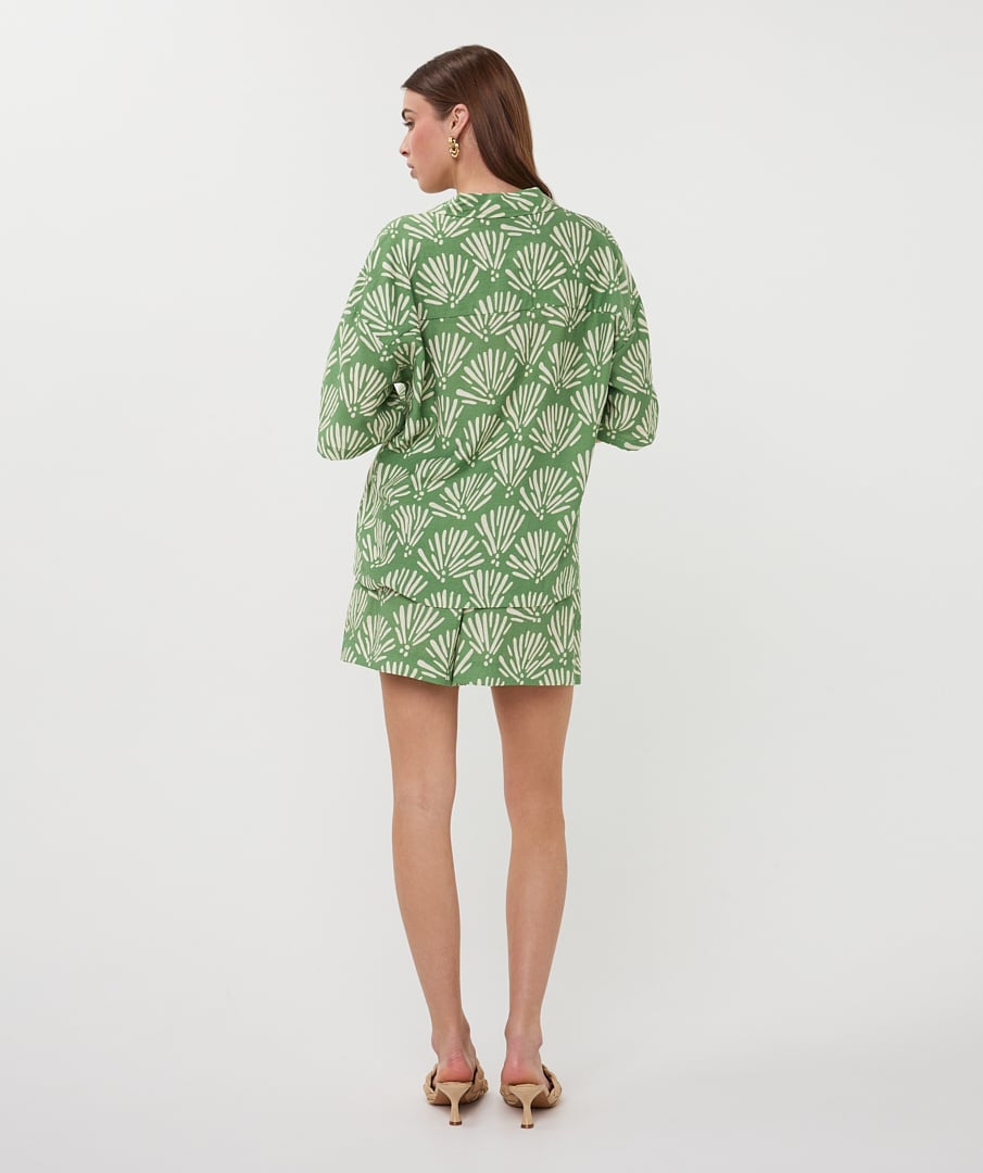Dankzij de pasvorm die normaal op maat valt, zit de blouse comfortabel en flatterend. Perfect te combineren met zowel een casual short als een nette broek voor een veelzijdige look.