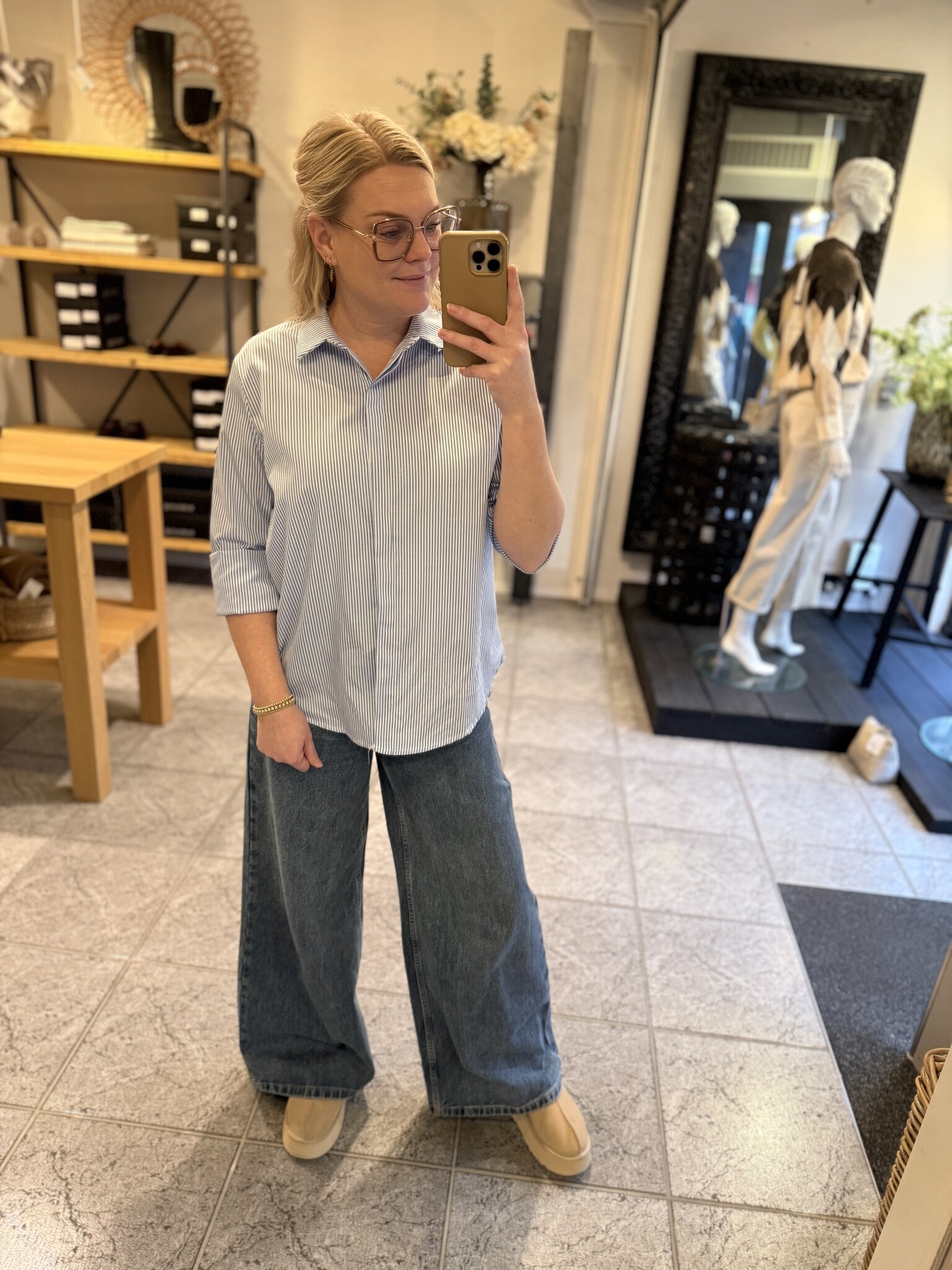 Deze stijlvolle blouse is een perfecte mix van comfort en elegantie. Het model is aan de voorkant iets korter en aan de achterkant langer, wat zorgt voor een flatterend en speels silhouet.