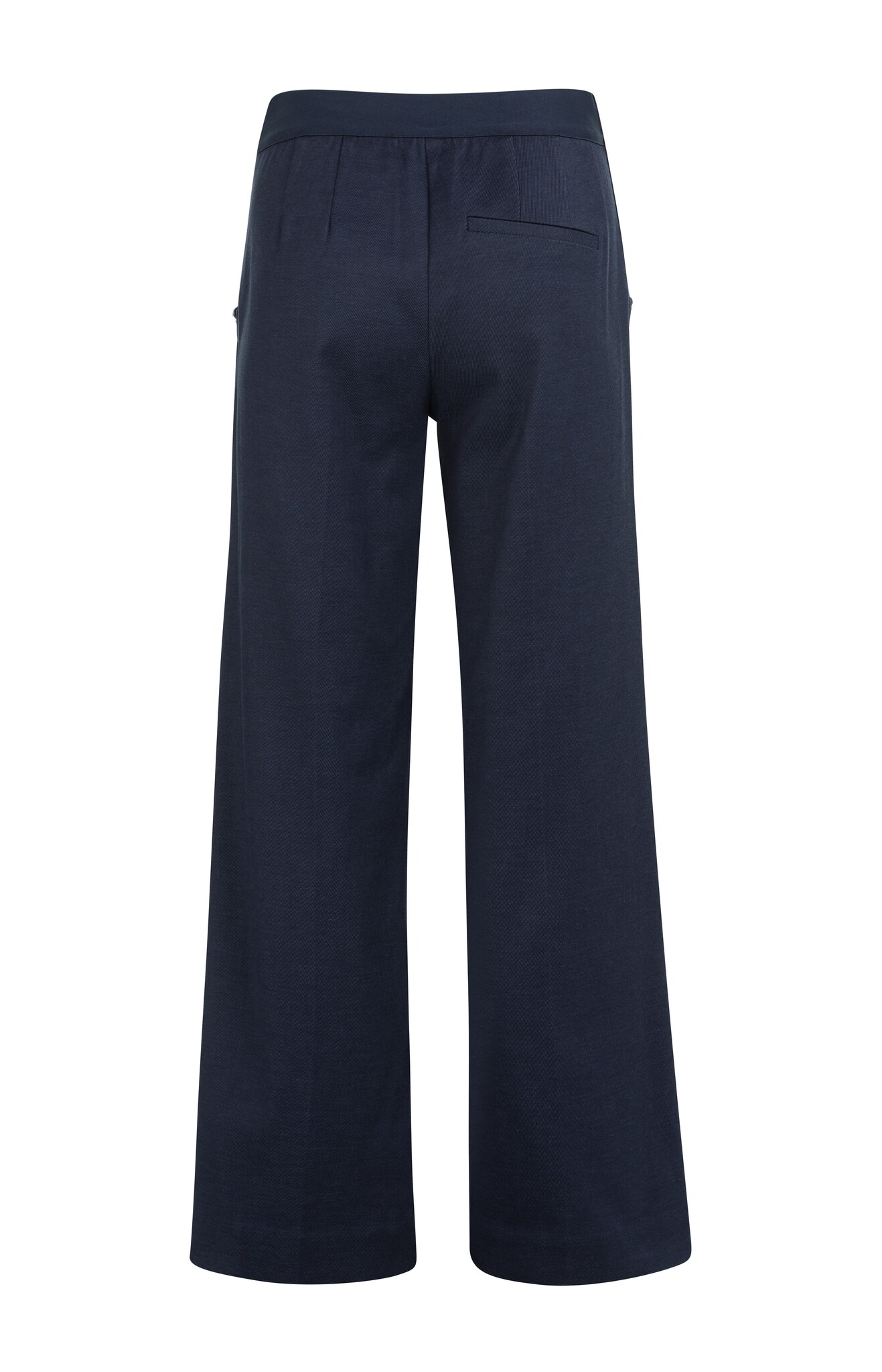 Deze stijlvolle broek met hoge taille is gemaakt van een zachte, soepelvallende stof en heeft een losse pasvorm. Het model heeft wijde pijpen en is afgewerkt met sierlijke knopen langs de zijkant voor een verfijnde touch. De elastische tailleband zorgt voor extra comfort. Voorzien van paspelzakken achter. Het model is 175 cm en draagt maat 36.