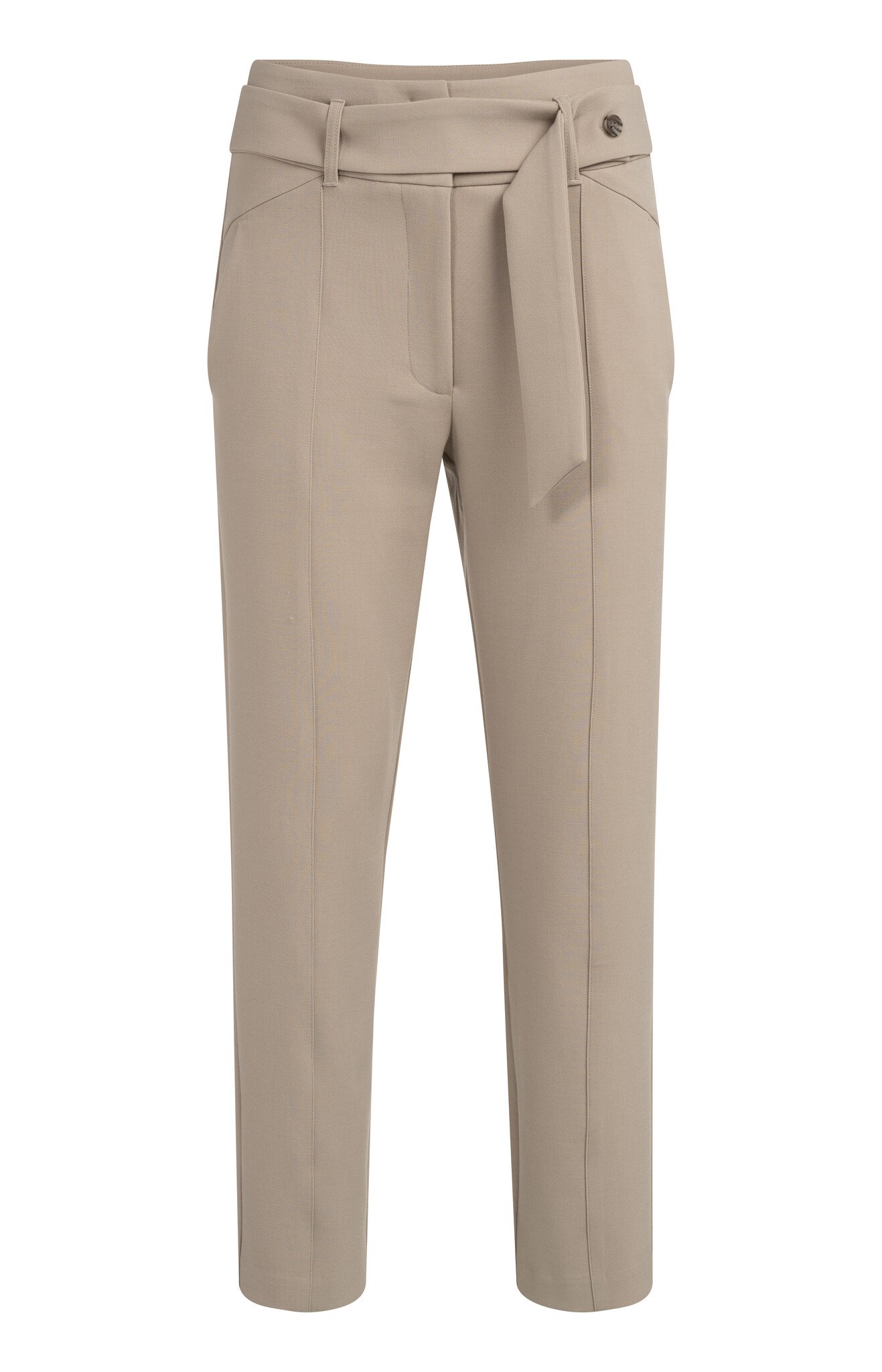 Deze elegante pantalon heeft een hoge taille, rechte pijpen en een normale pasvorm. Gemaakt van een comfortabele, soepele stof en afgewerkt met siernaden die de pasvorm accentueren.