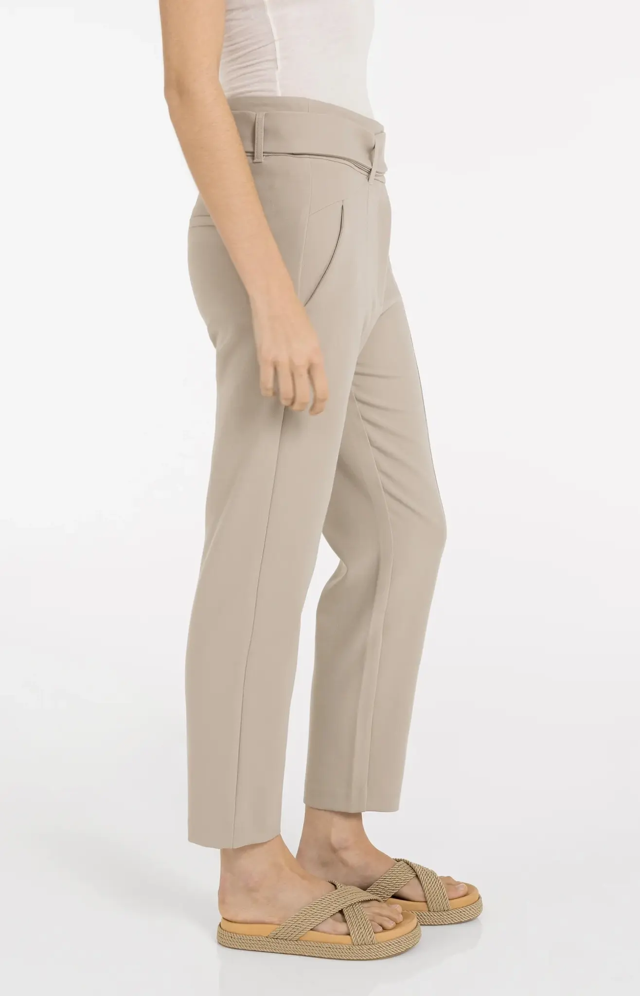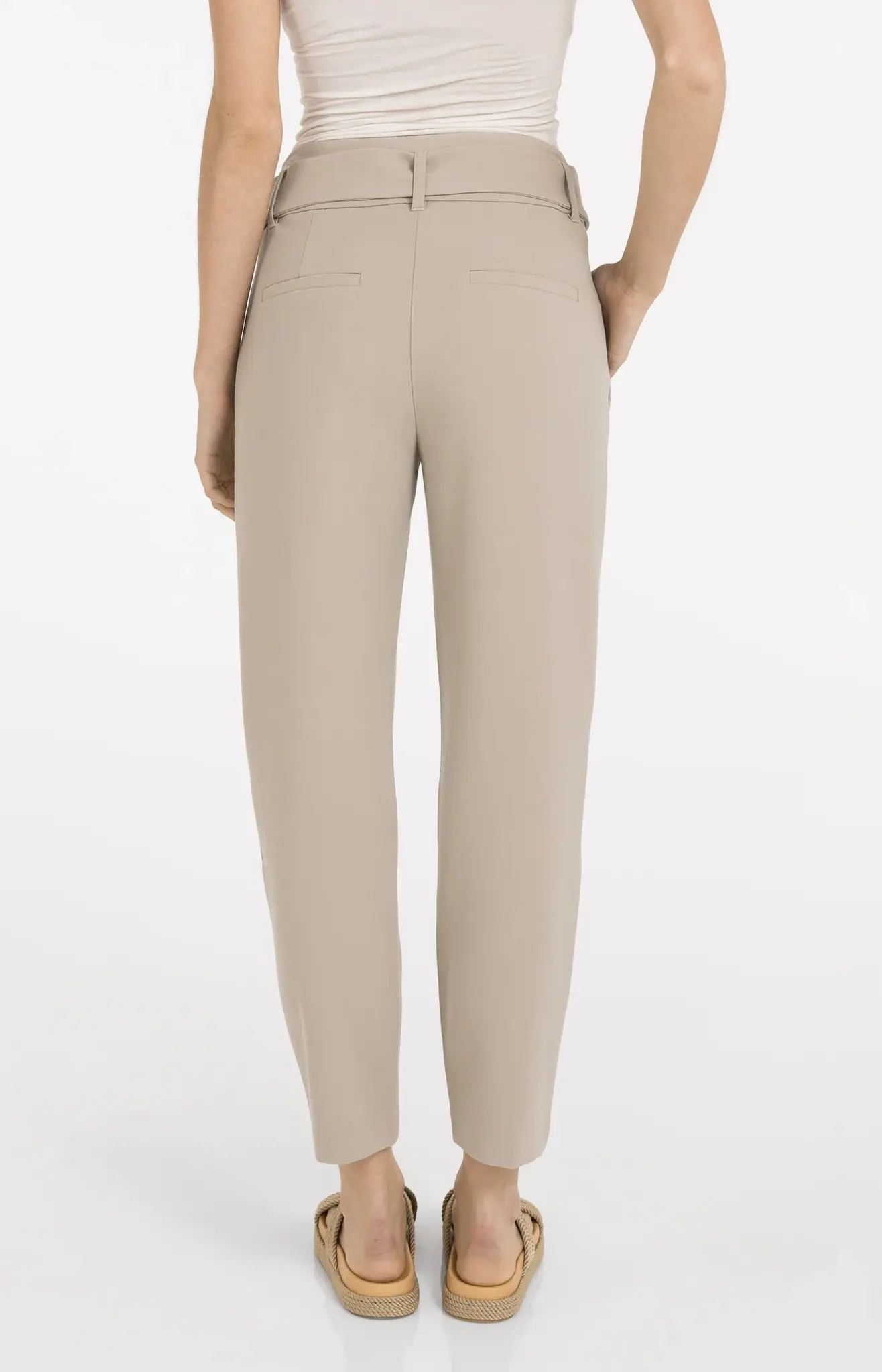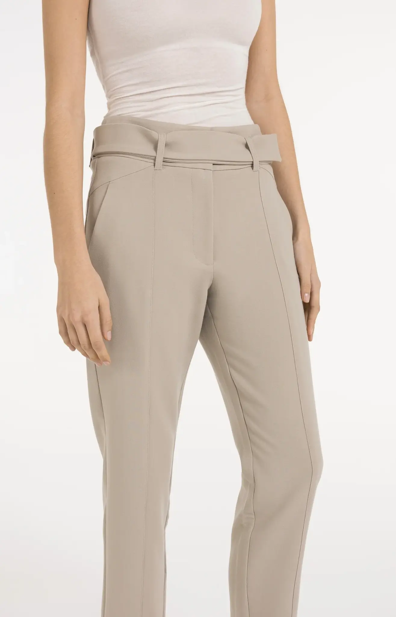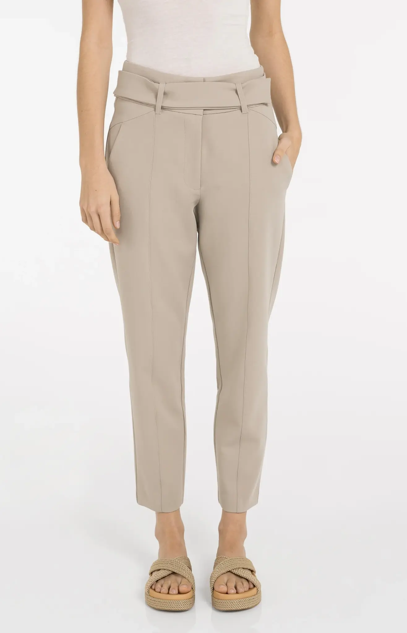 Deze elegante pantalon heeft een hoge taille, rechte pijpen en een normale pasvorm. Gemaakt van een comfortabele, soepele stof en afgewerkt met siernaden die de pasvorm accentueren. De bijpassende ceintuur benadrukt de taille, terwijl steekzakken en paspelzakken zorgen voor een nette uitstraling. Perfect voor een stijlvolle, moderne look. Het model is 176 cm en draagt maat 36.