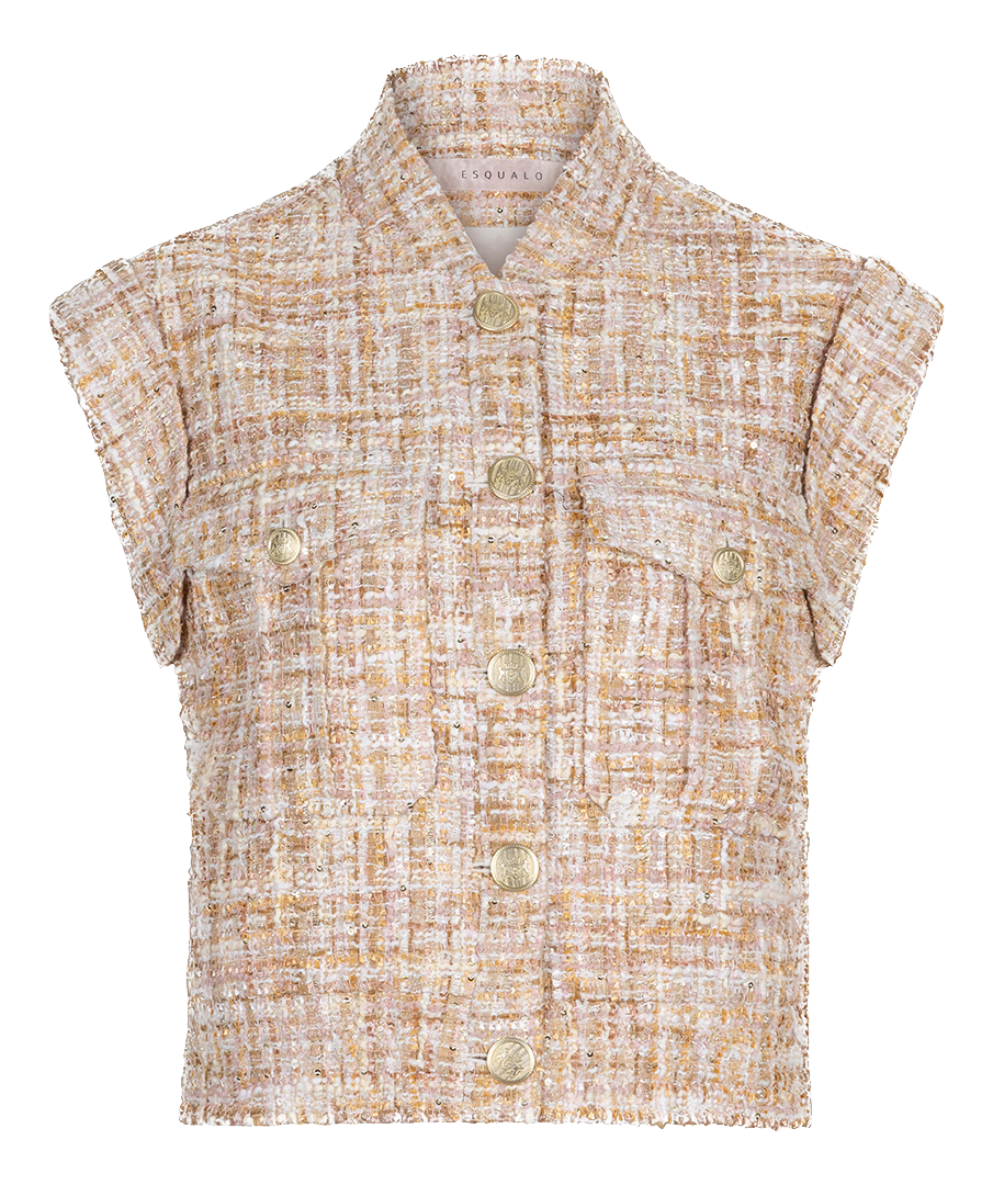 Til je look naar een hoger niveau met deze echte musthave! In dit gilet vind je de kleuren Off-White, Sand en light chalk pink, wat hem enorm goed te matchen maakt! Het gilet heeft klep zakjes, gouden knopen en kapmouwtjes.
