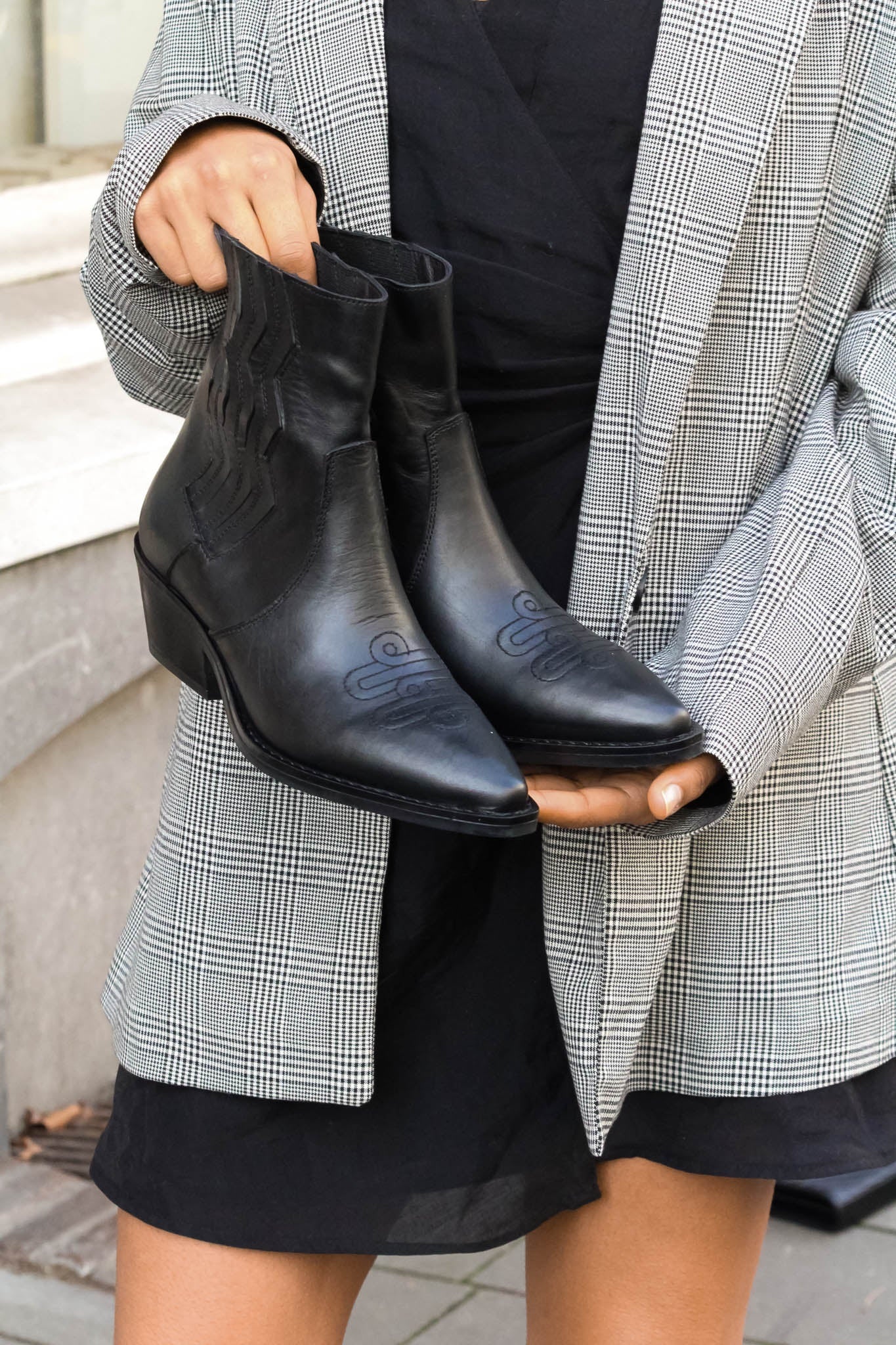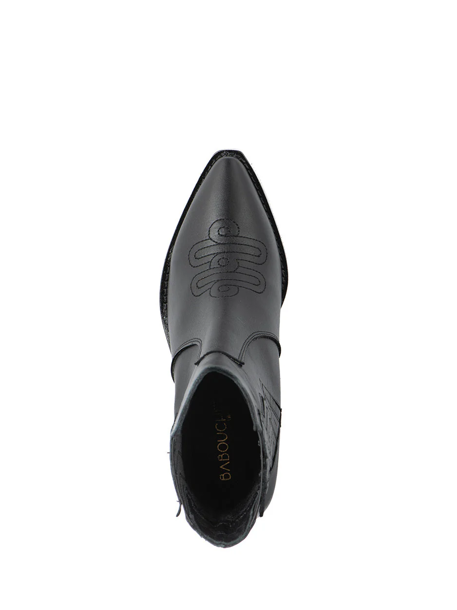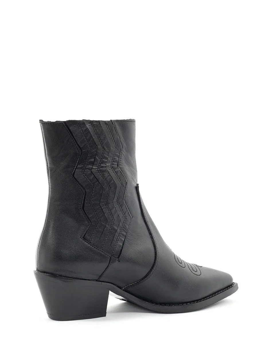 Deze lage cowboy-boots voor dames zijn aan de buitenzijde van leer en aan de binnenzijde van leer. Ze hebben een opvallend stiksel patroon. Dit is een city western laarje echt de trend dit seizoen. Draag deze enkellaarsjes met een jeans voor een stoere look of onder een rokje/jurk voor fashionable uiterlijk.