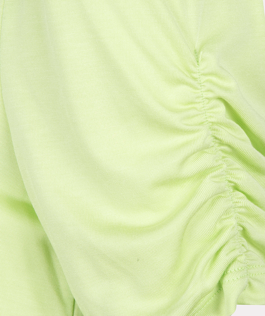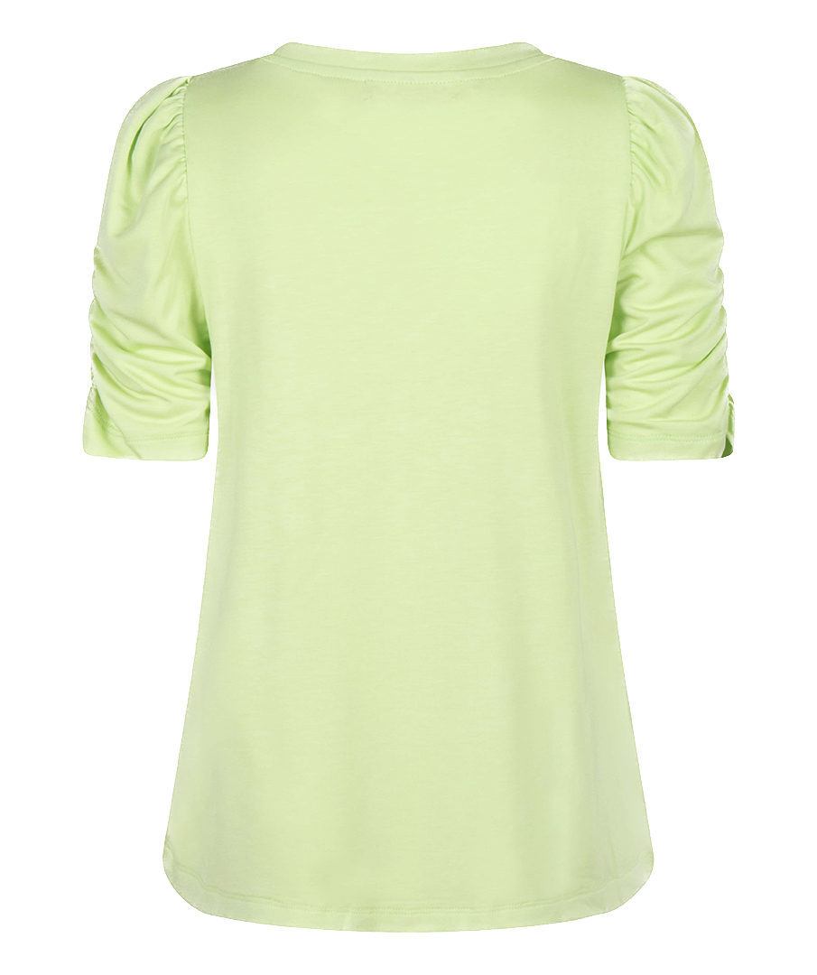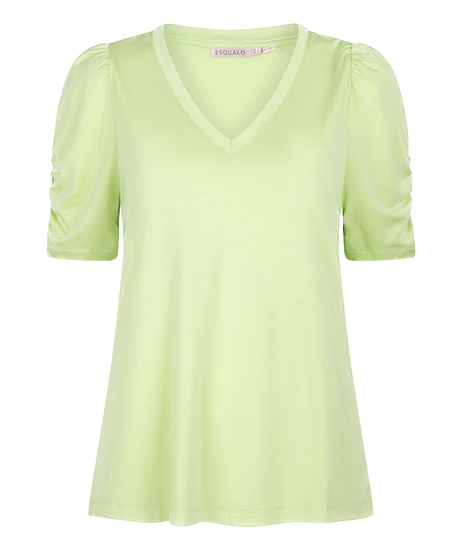 Comfortabele basistop met v-hals en gedrapeerd detail op de mouw. De top is gemaakt van 70% modal en 30% polyester.