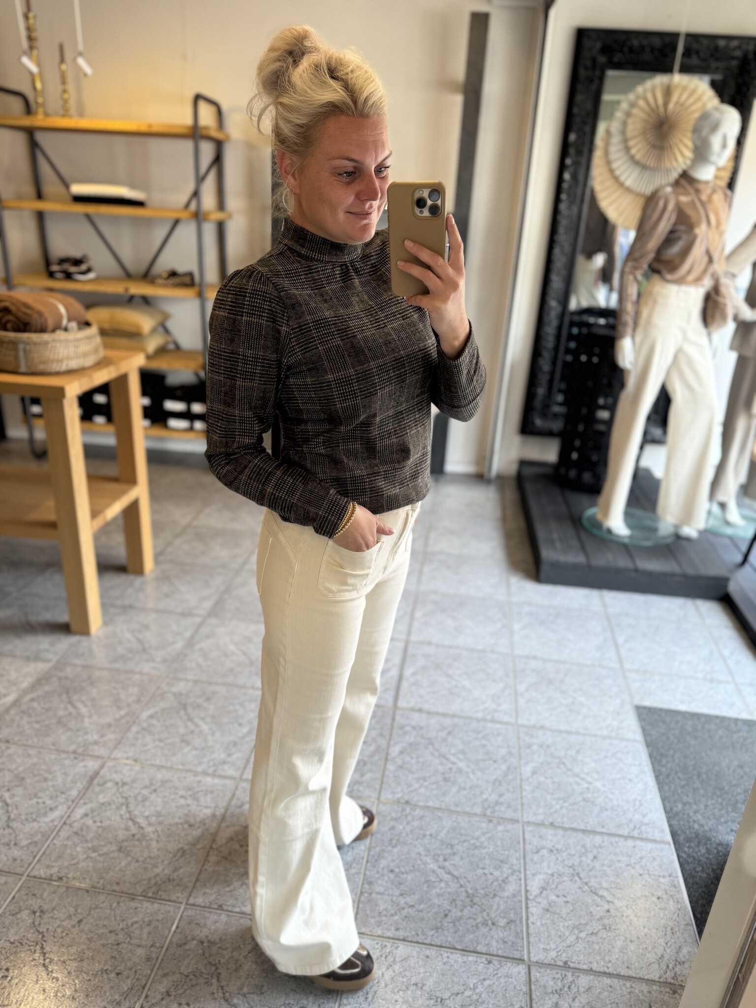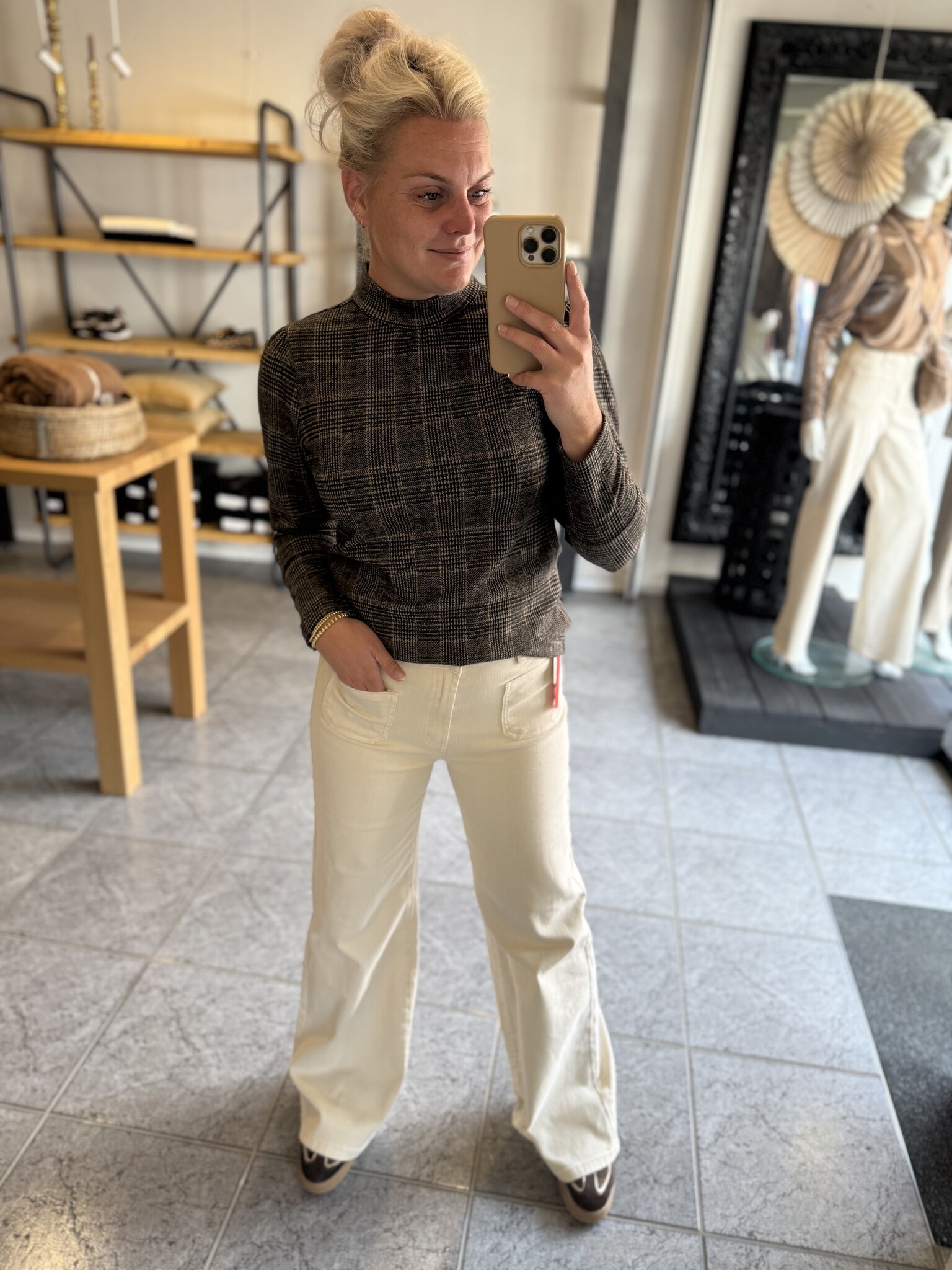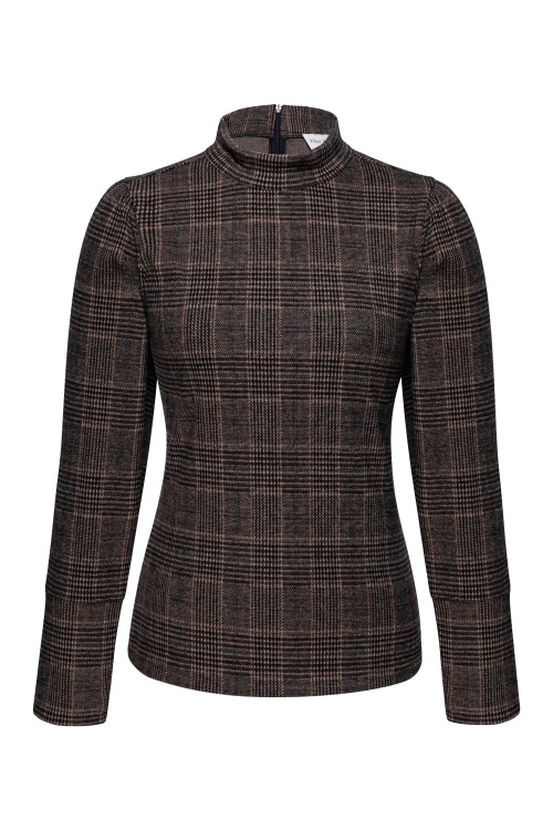 De Cara top is een stijlvolle en gestructureerde top met een moderne ruitprint. Gemaakt van stretch twill, biedt deze top een comfortabele pasvorm met een elegante uitstraling. De ritssluiting aan de achterkant zorgt voor een strakke afwerking, terwijl het aangesloten silhouet perfect combineert met de serenity straight.