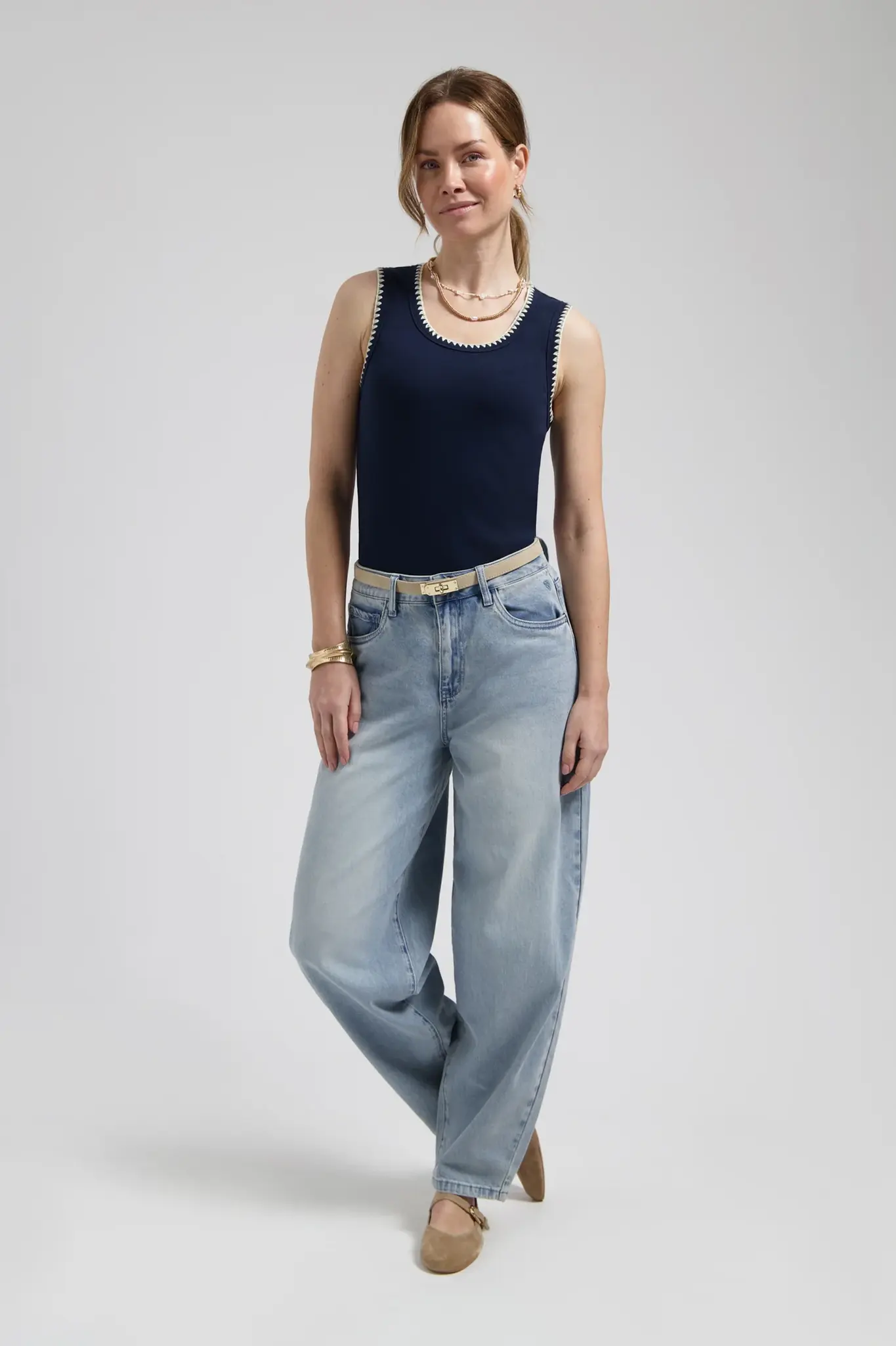De Solé is een zachte katoenen tanktop, afgewerkt met een subtiel stikseldetail langs de boorden. Een fijn item dat je moeiteloos met al je outfits combineert. Verkrijgbaar in meerdere kleuren. Het model draagt maat S.