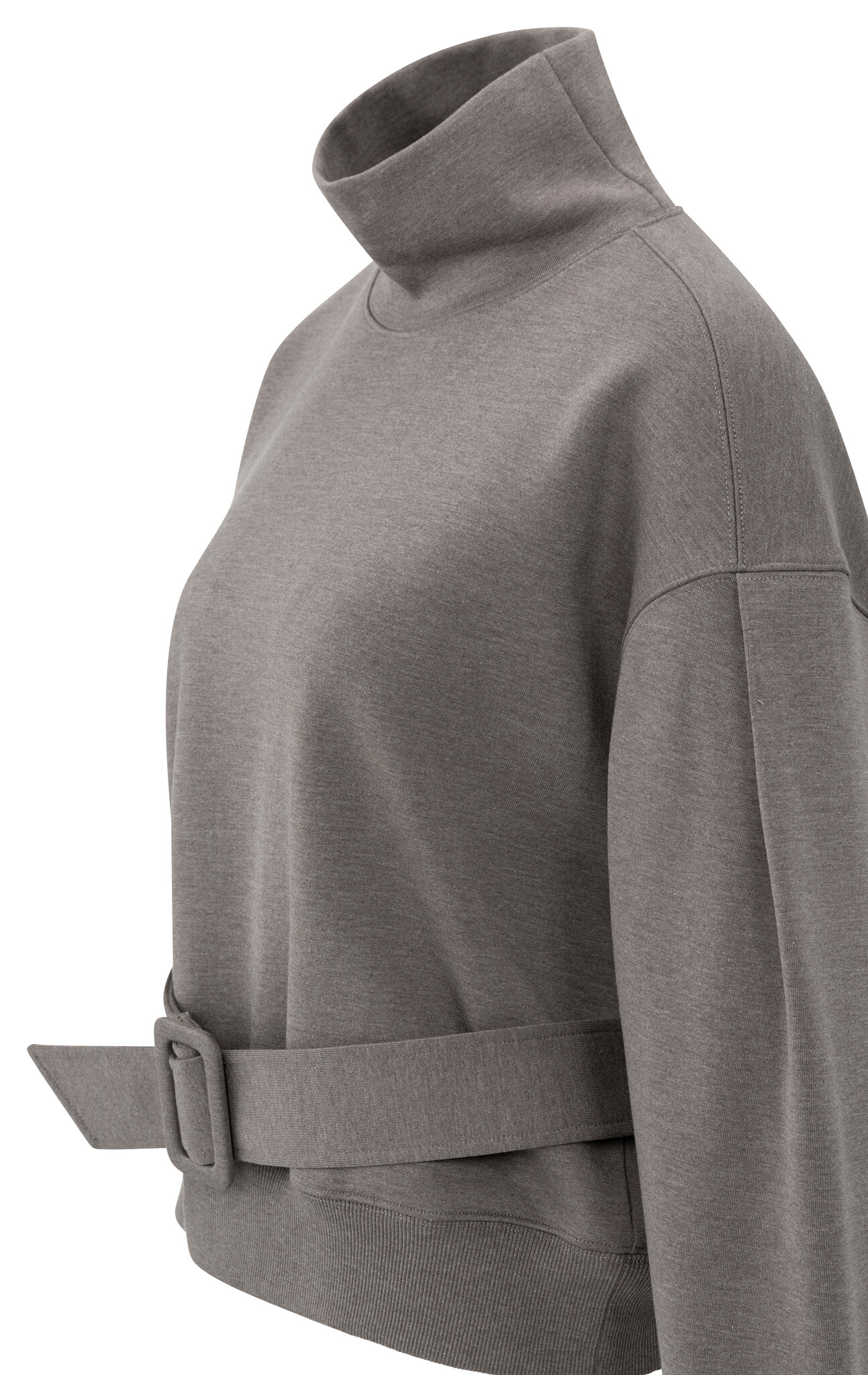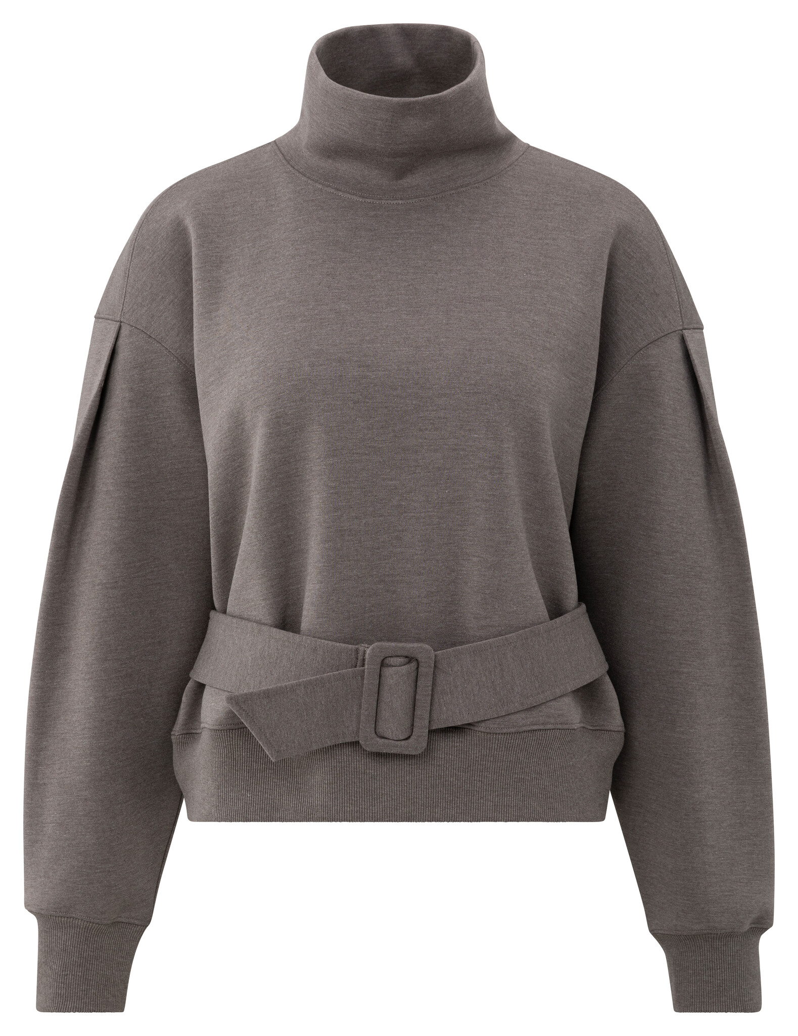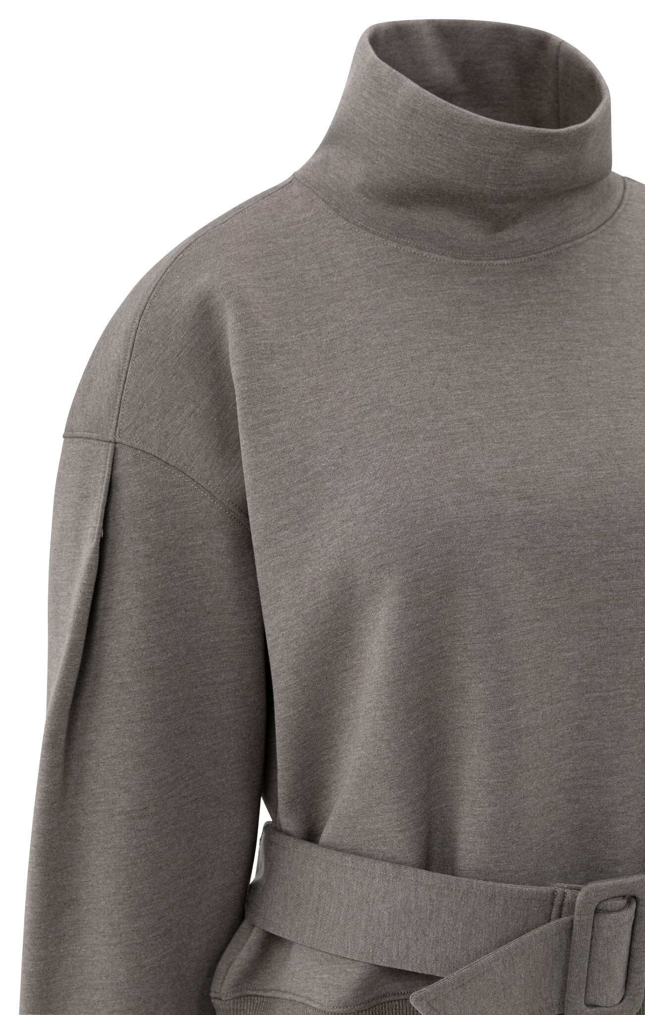 Deze sweater is gemaakt van een zachte jersey stof en heeft een hoge hals, lange mouwen en een rechte pasvorm. De geribde boorden zorgen voor extra comfort. De bijpassende ceintuur accentueert de taille en geeft een moderne twist aan het ontwerp. Een stijlvol item dat zowel casual als gekleed gedragen kan worden.