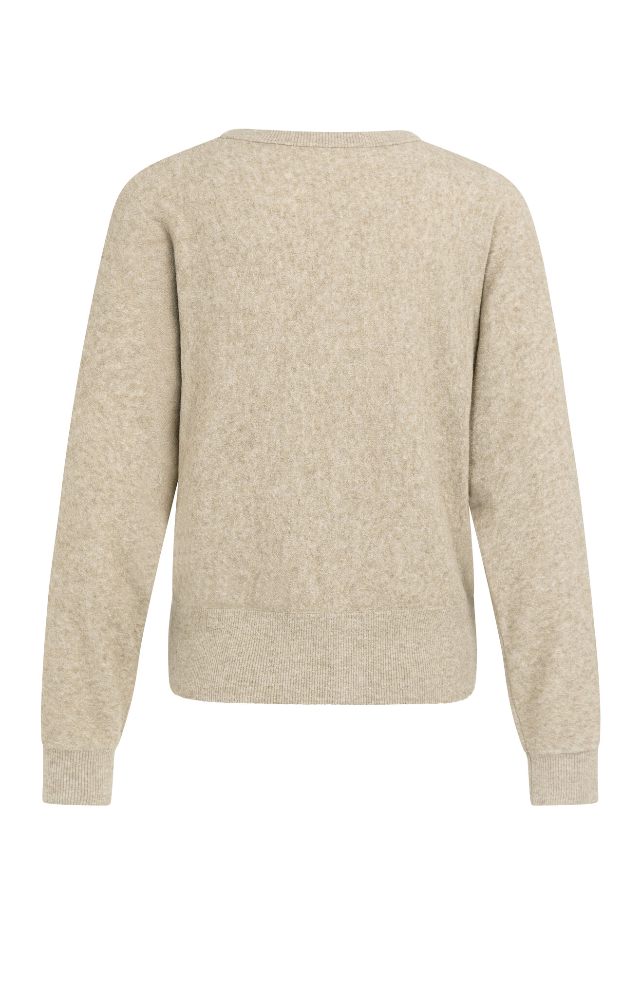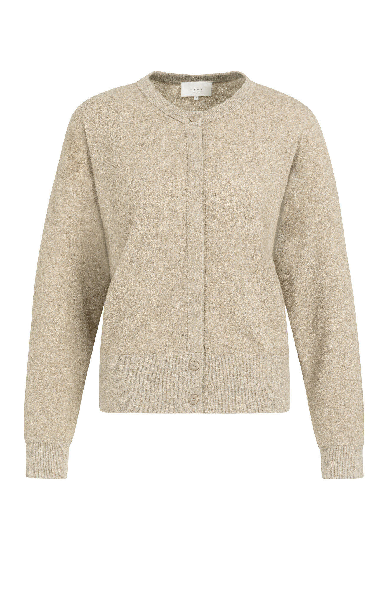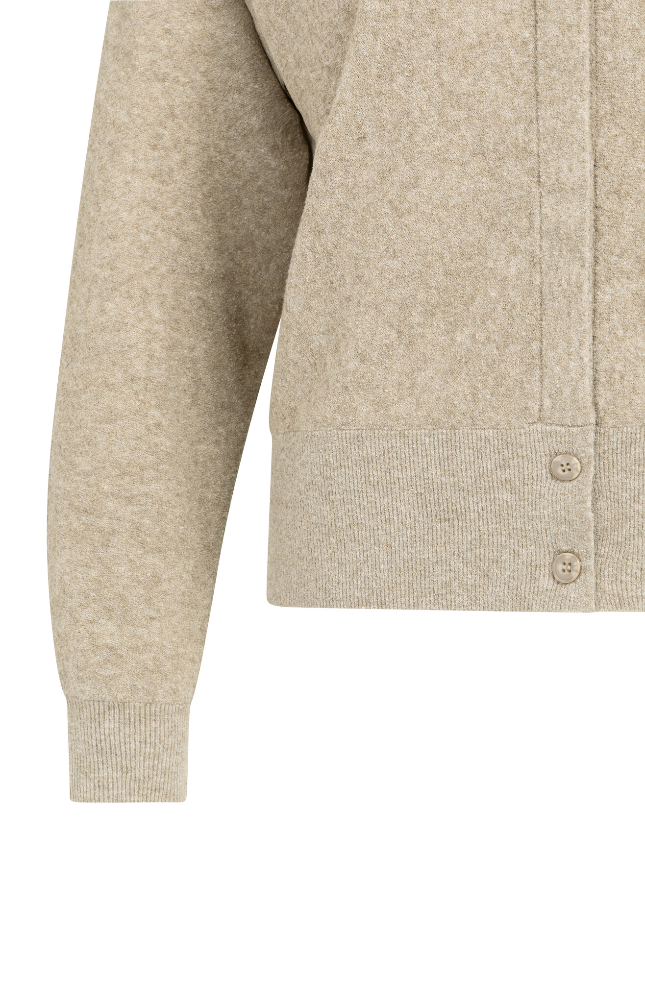 Dit vest heeft een tijdloze uitstraling en is uitgevoerd in een zachte, subtiel gemêleerde stof met een structuur die doet denken aan badstof. Het ontwerp is voorzien van een ronde hals, lange mouwen en een knoopsluiting aan de voorzijde met deels verborgen knopen voor een verfijnde afwerking. De comfortabele pasvorm en fijne details maken dit vest ideaal voor dagelijks gebruik.